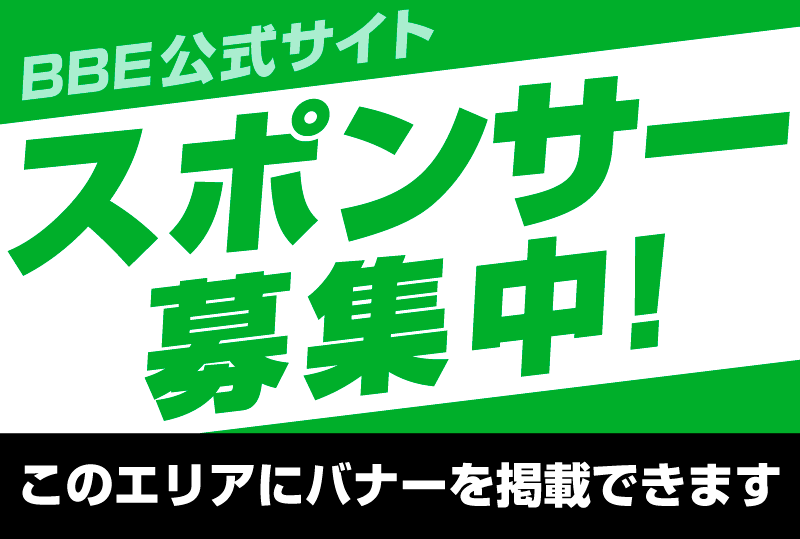 2024年1月5日 スポンサー募集について BBE公式サイトのスポンサーを募集しています。 スポンサー特典としてサイト内にバナーを設置させていただきます。 バナー設置箇所によって金額が異なりますので、詳しくはお問い合わせください。 お問い合わせフォームはこちら / お知らせ / BBE